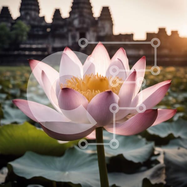 Intra Συλλεκτικό Ξύλινο Παζλ Plywood 4mm – Λουλούδι Lotus σε μια λίμνη με το ναό στο φόντο Σε Ξύλινο Κουτί – Διαστάσεις: 10×10 cm – 25 κομμάτια