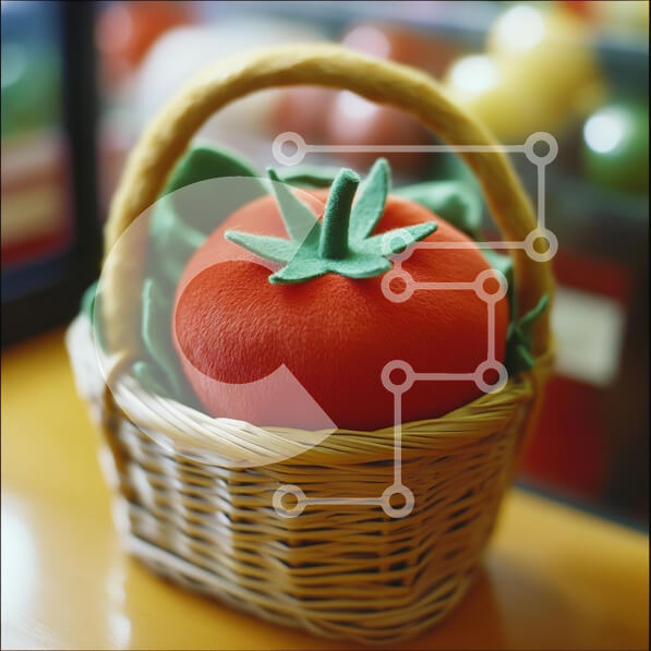 Intra Συλλεκτικό Ξύλινο Παζλ Plywood 4mm – Λούτρινη ντομάτα σε ψάθινο καλάθι Σε Ξύλινο Κουτί – Διαστάσεις: 10×10 cm – 25 κομμάτια