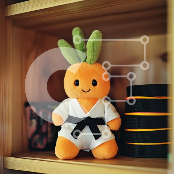 Intra Συλλεκτικό Ξύλινο Παζλ Plywood 4mm – Λούτρινο παιχνίδι καρότο σε καράτε στολή Σε Ξύλινο Κουτί – Διαστάσεις: 10×10 cm – 25 κομμάτια