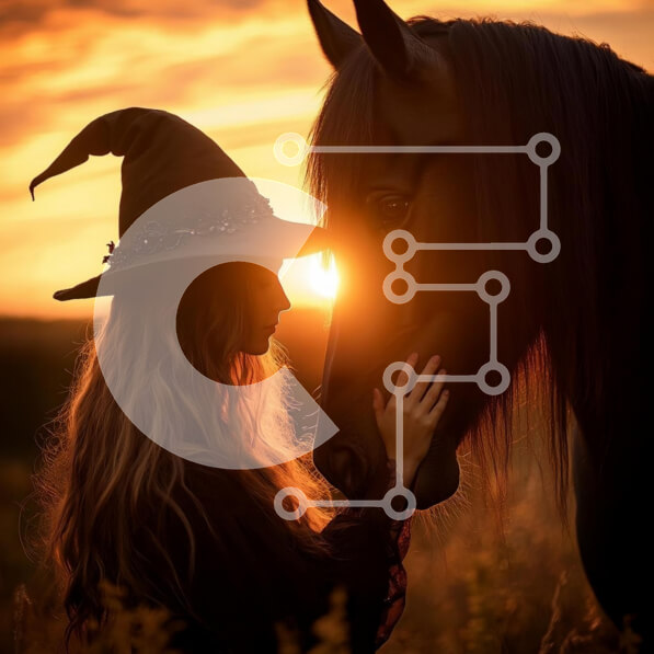 Intra Συλλεκτικό Ξύλινο Παζλ Plywood 4mm – Μαγευτικό ηλιοβασίλεμα με μάγισσα και άλογο Σε Ξύλινο Κουτί – Διαστάσεις: 10×10 cm – 25 κομμάτια
