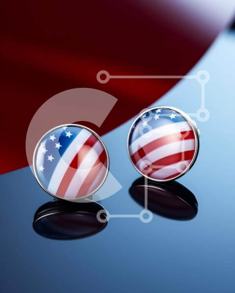 Intra Συλλεκτικό Ξύλινο Παζλ Plywood 4mm – Μανικετόκουμπα αμερικανικής σημαίας σε ανακλαστική επιφάνεια Σε Ξύλινο Κουτί – Διαστάσεις: 10×10 cm – 25 κομμάτια