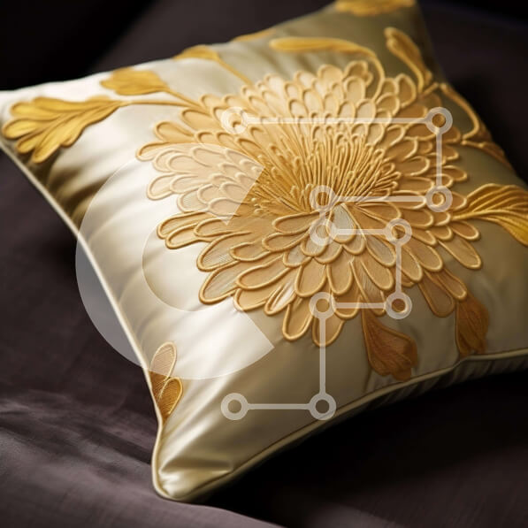 Intra Συλλεκτικό Ξύλινο Παζλ Plywood 4mm – Μαξιλάρι σε χρυσό χρώμα με κεντημένα λουλούδια σε καφέ καναπέ Σε Ξύλινο Κουτί – Διαστάσεις Puzzle: 10×10 cm – 25 κομμάτια