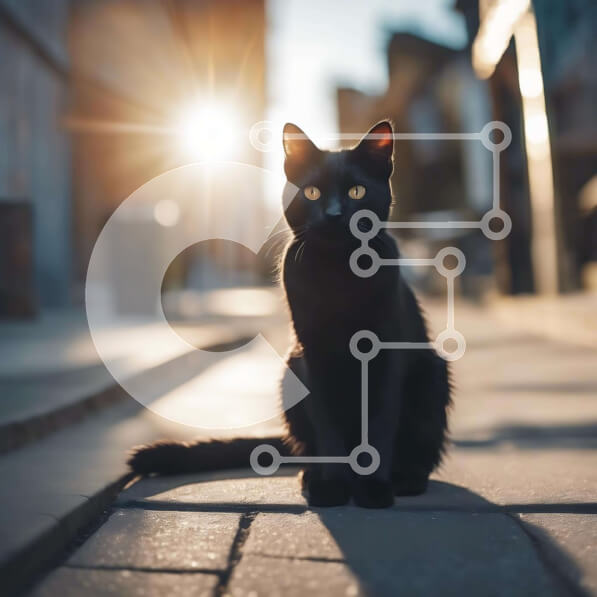 Intra Συλλεκτικό Ξύλινο Παζλ Plywood 4mm – Μαύρη γάτα που κάθεται στο πεζοδρόμιο σε αστικό περιβάλλον Σε Ξύλινο Κουτί – Διαστάσεις: 10×10 cm – 25 κομμάτια