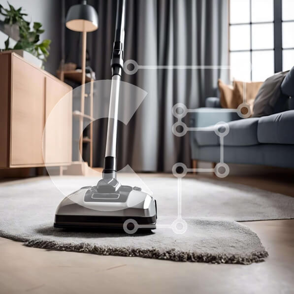 Intra Συλλεκτικό Ξύλινο Παζλ Plywood 4mm – Μαύρη ηλεκτρική σκούπα στο σαλόνι με φυτά σε γλάστρες Σε Ξύλινο Κουτί – Διαστάσεις Puzzle: 10×10 cm – 25 κομμάτια