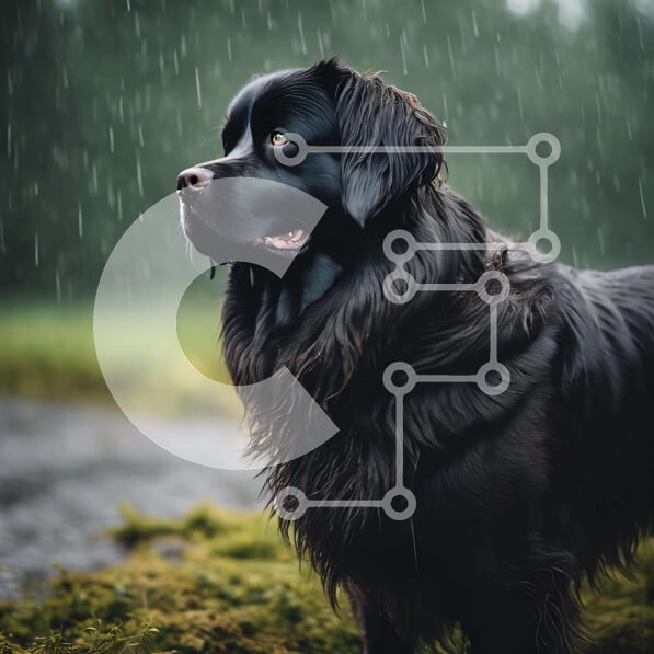Intra Συλλεκτικό Ξύλινο Παζλ Plywood 4mm – Μαύρος σκύλος στη βροχή κοιτάζοντας ψηλά στον ουρανό Σε Ξύλινο Κουτί – Διαστάσεις: 10×10 cm – 25 κομμάτια