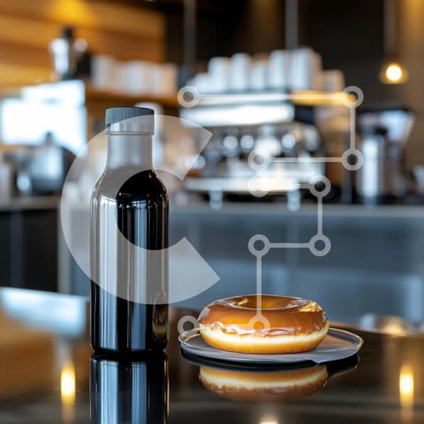 Intra Συλλεκτικό Ξύλινο Παζλ Plywood 4mm – Μαύρο μπουκάλι νερού και γυαλισμένο ντόνατ σε σκηνικό καφέ Σε Ξύλινο Κουτί – Διαστάσεις: 10×10 cm – 25 κομμάτια