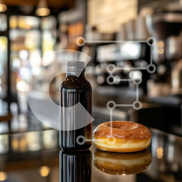 Intra Συλλεκτικό Ξύλινο Παζλ Plywood 4mm – Μαύρο μπουκάλι και γυαλισμένο ντόνατ στο καφέ Σε Ξύλινο Κουτί – Διαστάσεις: 10×10 cm – 25 κομμάτια