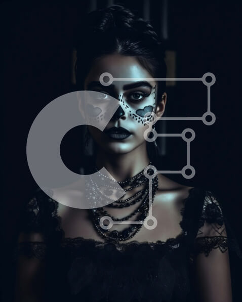 Intra Συλλεκτικό Ξύλινο Παζλ Plywood 4mm – Μαύρο φόρεμα και μακιγιάζ κρανίου αποτελούν μια τολμηρή δήλωση μόδας Σε Ξύλινο Κουτί – Διαστάσεις Puzzle: 10×10 cm – 25 κομμάτια