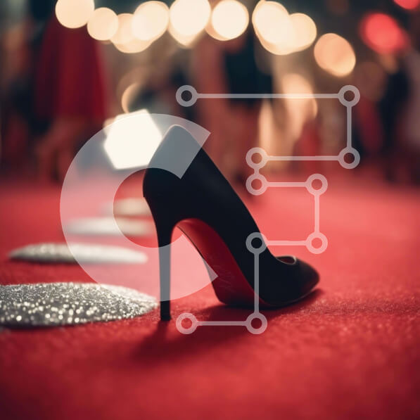 Intra Συλλεκτικό Ξύλινο Παζλ Plywood 4mm – Μαύρο ψηλοτάκουνο παπούτσι στο κόκκινο χαλί με ανθρώπους Σε Ξύλινο Κουτί – Διαστάσεις: 10×10 cm – 25 κομμάτια