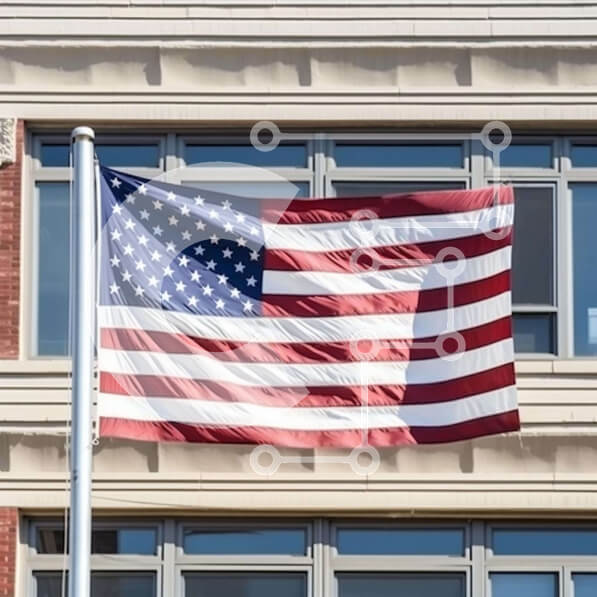 Intra Συλλεκτικό Ξύλινο Παζλ Plywood 4mm – Μεγάλη αμερικανική σημαία κοντά σε πολυκατοικία Σε Ξύλινο Κουτί – Διαστάσεις Puzzle: 10×10 cm – 25 κομμάτια