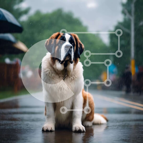 Intra Συλλεκτικό Ξύλινο Παζλ Plywood 4mm – Μεγάλο σκυλί St. Bernard που περιμένει στη βροχή Σε Ξύλινο Κουτί – Διαστάσεις: 10×10 cm – 25 κομμάτια
