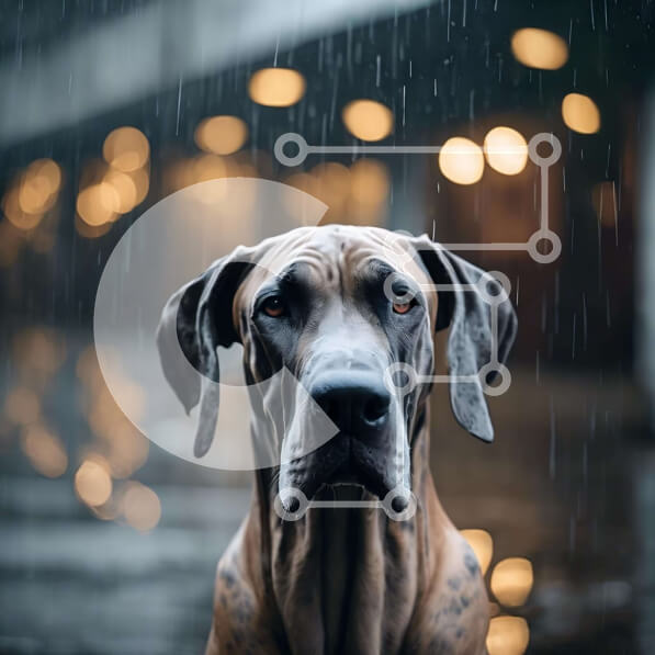 Intra Συλλεκτικό Ξύλινο Παζλ Plywood 4mm – Μεγάλο σκυλί που στέκεται στη βροχή Σε Ξύλινο Κουτί – Διαστάσεις: 10×10 cm – 25 κομμάτια