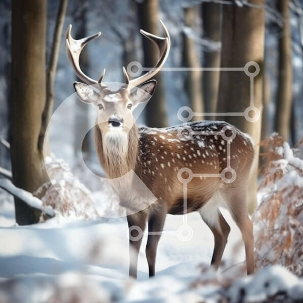 Intra Συλλεκτικό Ξύλινο Παζλ Plywood 4mm – Μεγαλοπρεπές ελάφι σε ένα χιονισμένο δάσος Σε Ξύλινο Κουτί – Διαστάσεις: 10×10 cm – 25 κομμάτια