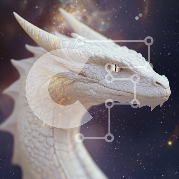 Intra Συλλεκτικό Ξύλινο Παζλ Plywood 4mm – Μεγαλοπρεπής Λευκός Δράκος στο Κοσμικό Διάστημα Σε Ξύλινο Κουτί – Διαστάσεις Puzzle: 10×10 cm – 25 κομμάτια