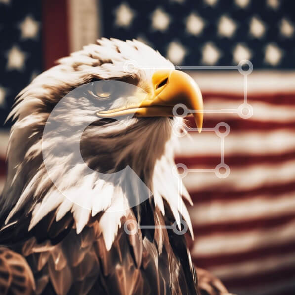 Intra Συλλεκτικό Ξύλινο Παζλ Plywood 4mm – Μεγαλοπρεπής αετός μπροστά από την αμερικανική σημαία Σε Ξύλινο Κουτί – Διαστάσεις: 10×10 cm – 25 κομμάτια