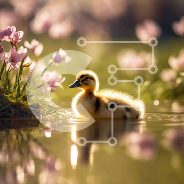 Intra Συλλεκτικό Ξύλινο Παζλ Plywood 4mm – Μικρή πάπια που κολυμπά στο νερό κοντά σε ροζ λουλούδια Σε Ξύλινο Κουτί – Διαστάσεις: 10×10 cm – 25 κομμάτια