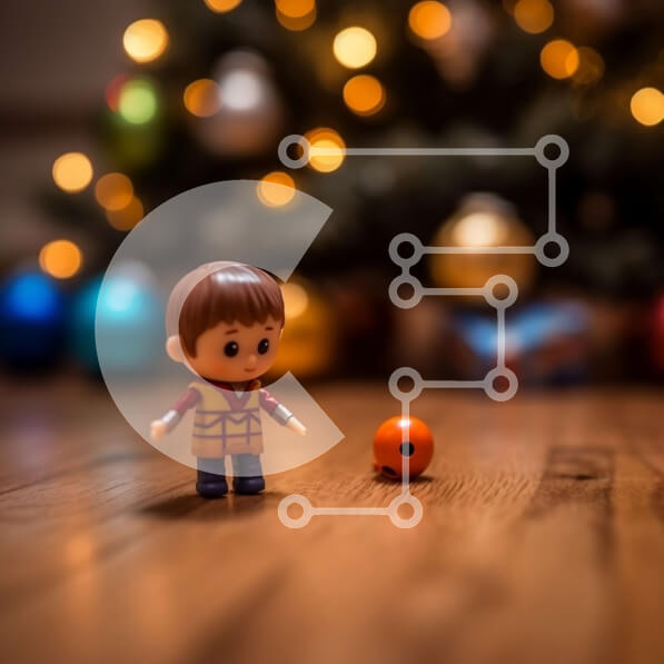 Intra Συλλεκτικό Ξύλινο Παζλ Plywood 4mm – Μικρό κόκκινο παιχνίδι αυτοκίνητο σε ένα ξύλινο πάτωμα μπροστά από το χριστουγεννιάτικο δέντρο Σε Ξύλινο Κουτί – Διαστάσεις: 10×10 cm – 25 κομμάτια