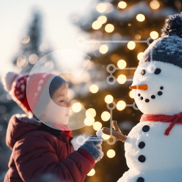 Intra Συλλεκτικό Ξύλινο Παζλ Plywood 4mm – Μικρό παιδί που παίζει με τον τεχνητό χιονάνθρωπο το χειμώνα Σε Ξύλινο Κουτί – Διαστάσεις Puzzle: 10×10 cm – 25 κομμάτια