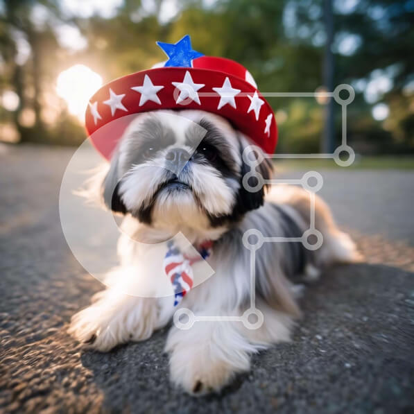Intra Συλλεκτικό Ξύλινο Παζλ Plywood 4mm – Μικρό σκυλί που γιορτάζει την 4η Ιουλίου με καπέλο με θέμα την αμερικανική σημαία Σε Ξύλινο Κουτί – Διαστάσεις: 10×10 cm – 25 κομμάτια