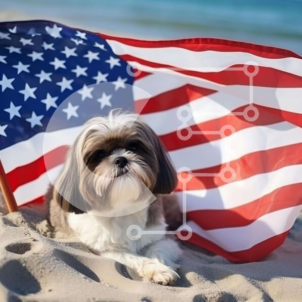 Intra Συλλεκτικό Ξύλινο Παζλ Plywood 4mm – Μικρό σκυλί στην παραλία με αμερικανική σημαία Σε Ξύλινο Κουτί – Διαστάσεις: 10×10 cm – 25 κομμάτια