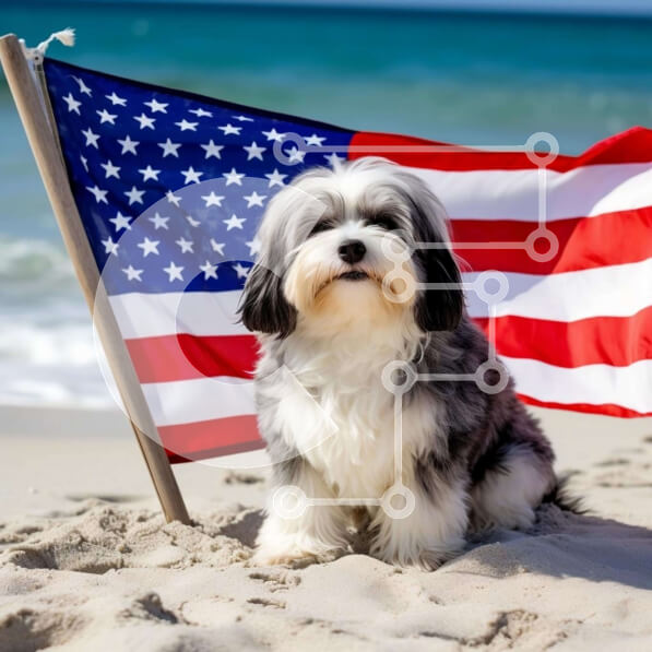 Intra Συλλεκτικό Ξύλινο Παζλ Plywood 4mm – Μικρό σκυλί με αμερικανική σημαία στην παραλία Σε Ξύλινο Κουτί – Διαστάσεις: 10×10 cm – 25 κομμάτια
