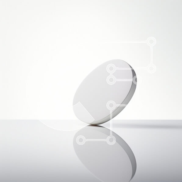 Intra Συλλεκτικό Ξύλινο Παζλ Plywood 4mm – Μινιμαλιστικό λευκό κυκλικό αντικείμενο σε ανακλαστική επιφάνεια Σε Ξύλινο Κουτί – Διαστάσεις: 10×10 cm – 25 κομμάτια