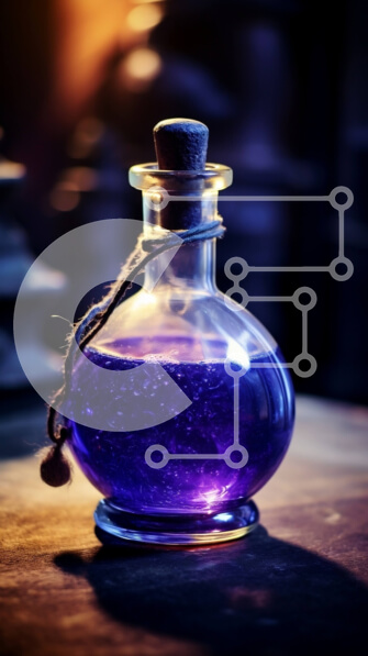 Intra Συλλεκτικό Ξύλινο Παζλ Plywood 4mm – Μοναδικό Μωβ Υγρό σε Γυάλινο Μπουκάλι σε Ξύλινο Τραπέζι Σε Ξύλινο Κουτί – Διαστάσεις Puzzle: 10×10 cm – 25 κομμάτια