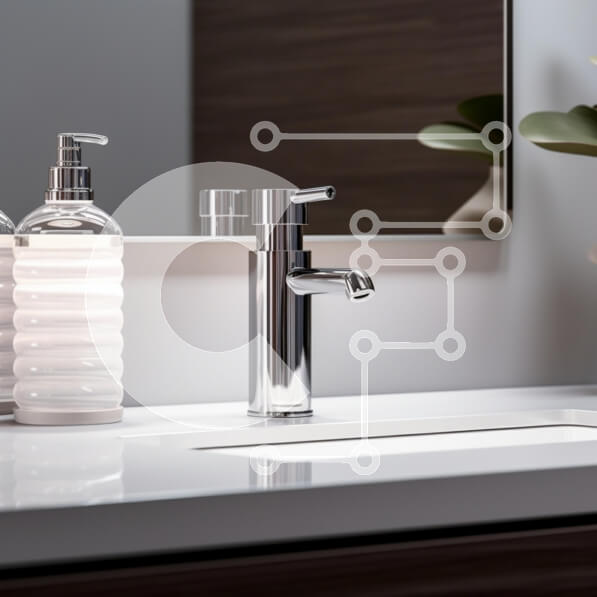 Intra Συλλεκτικό Ξύλινο Παζλ Plywood 4mm – Μοντέρνος νεροχύτης μπάνιου με βρύση χρωμίου και δοσομετρητή σαπουνιού Σε Ξύλινο Κουτί – Διαστάσεις Puzzle: 10×10 cm – 25 κομμάτια