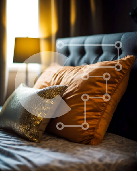 Intra Συλλεκτικό Ξύλινο Παζλ Plywood 4mm – Μοντέρνο Μαύρο και Πορτοκαλί Υπνοδωμάτιο με ριγέ αναπαυτικό Σε Ξύλινο Κουτί – Διαστάσεις Puzzle: 10×10 cm – 25 κομμάτια