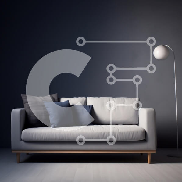 Intra Συλλεκτικό Ξύλινο Παζλ Plywood 4mm – Μοντέρνο μινιμαλιστικό σαλόνι με γκρι καναπέ Σε Ξύλινο Κουτί – Διαστάσεις Puzzle: 10×10 cm – 25 κομμάτια
