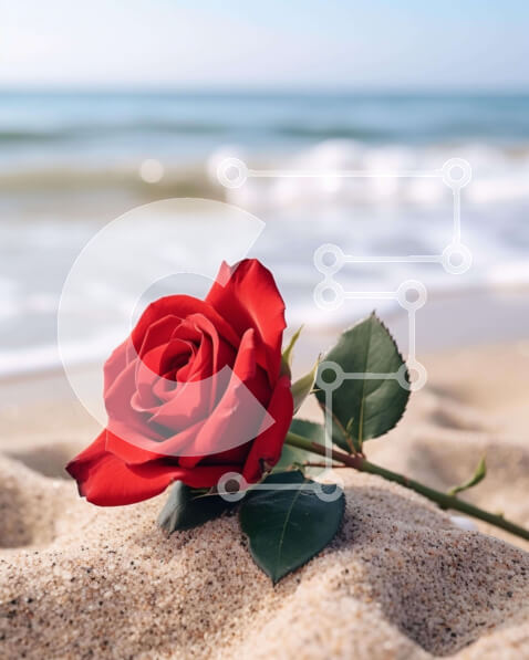 Intra Συλλεκτικό Ξύλινο Παζλ Plywood 4mm – Μονό κόκκινο τριαντάφυλλο στην παραλία με φόντο ωκεανό Σε Ξύλινο Κουτί – Διαστάσεις: 10×10 cm – 25 κομμάτια