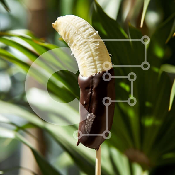 Intra Συλλεκτικό Ξύλινο Παζλ Plywood 4mm – Μπανάνα βουτηγμένη σε σοκολάτα με βρώσιμο ραβδί και φοίνικες Σε Ξύλινο Κουτί – Διαστάσεις: 10×10 cm – 25 κομμάτια