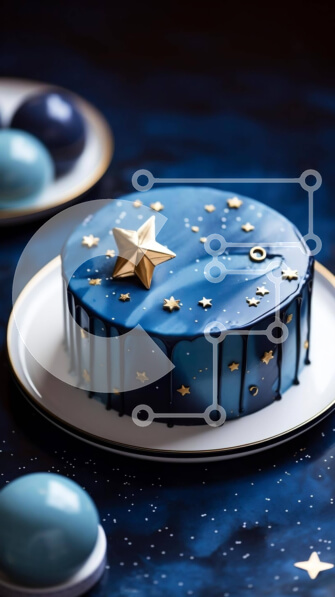 Intra Συλλεκτικό Ξύλινο Παζλ Plywood 4mm – Μπλε κέικ με αστέρια και χρυσά διακοσμητικά σε σκούρο μπλε τραπεζομάντιλο Σε Ξύλινο Κουτί – Διαστάσεις: 10×10 cm – 25 κομμάτια