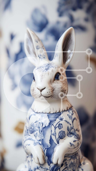 Intra Συλλεκτικό Ξύλινο Παζλ Plywood 4mm – Μπλε και άσπρο ειδώλιο λαγουδάκι με διακοσμητικό βάζο Σε Ξύλινο Κουτί – Διαστάσεις: 10×10 cm – 25 κομμάτια