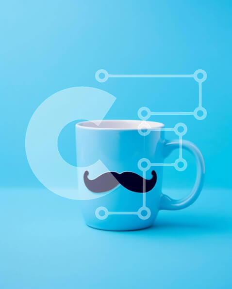 Intra Συλλεκτικό Ξύλινο Παζλ Plywood 4mm – Μπλε κούπα καφέ με σχέδιο μουστάκι σε μπλε φόντο Σε Ξύλινο Κουτί – Διαστάσεις: 10×10 cm – 25 κομμάτια