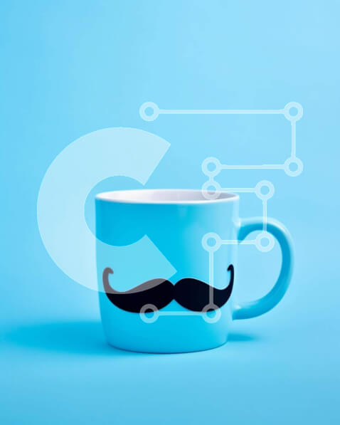 Intra Συλλεκτικό Ξύλινο Παζλ Plywood 4mm – Μπλε κούπα καφέ με σχέδιο μουστάκι Σε Ξύλινο Κουτί – Διαστάσεις: 10×10 cm – 25 κομμάτια
