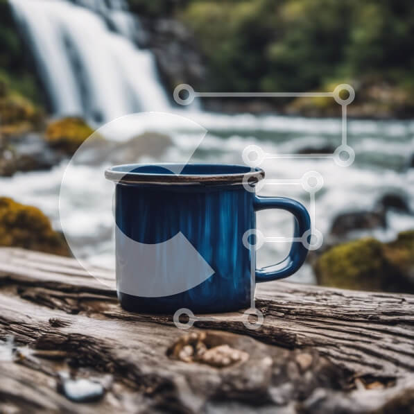 Intra Συλλεκτικό Ξύλινο Παζλ Plywood 4mm – Μπλε κούπα από σμάλτο δίπλα στον καταρράκτη Σε Ξύλινο Κουτί – Διαστάσεις: 10×10 cm – 25 κομμάτια