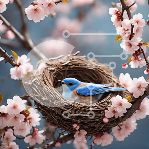 Intra Συλλεκτικό Ξύλινο Παζλ Plywood 4mm – Μπλε πουλί που φωλιάζει σε μηλιά με ροζ άνθη Σε Ξύλινο Κουτί – Διαστάσεις: 10×10 cm – 25 κομμάτια