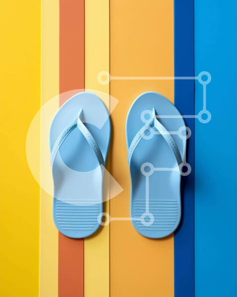 Intra Συλλεκτικό Ξύλινο Παζλ Plywood 4mm – Μπλε σαγιονάρες σε πολύχρωμο ριγέ φόντο Σε Ξύλινο Κουτί – Διαστάσεις Puzzle: 10×10 cm – 25 κομμάτια