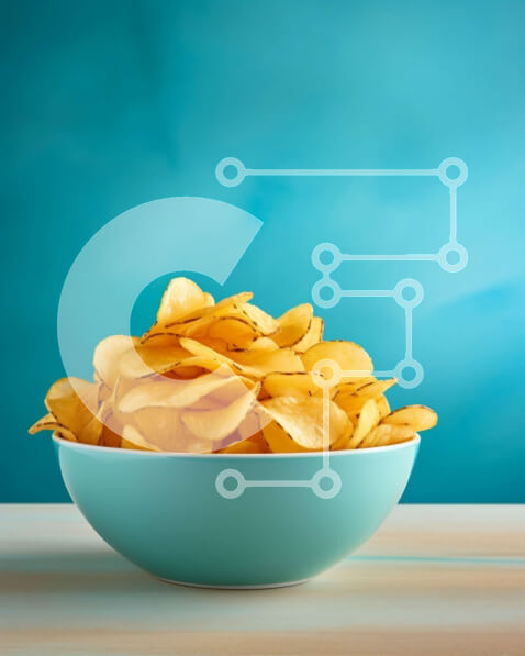 Intra Συλλεκτικό Ξύλινο Παζλ Plywood 4mm – Μπολ με πατατάκια σε ξύλινο τραπέζι με φόντο μπλε του ουρανού Σε Ξύλινο Κουτί – Διαστάσεις: 10×10 cm – 25 κομμάτια