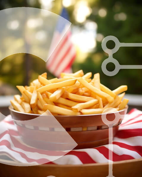 Intra Συλλεκτικό Ξύλινο Παζλ Plywood 4mm – Μπολ με τηγανιτές πατάτες σε αμερικανική σημαία και καρό τραπεζομάντιλο Σε Ξύλινο Κουτί – Διαστάσεις: 10×10 cm – 25 κομμάτια
