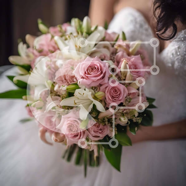 Intra Συλλεκτικό Ξύλινο Παζλ Plywood 4mm – Μπουκέτο κρατώντας νύφη με ροζ τριαντάφυλλα και λευκούς κρίνους Σε Ξύλινο Κουτί – Διαστάσεις: 10×10 cm – 25 κομμάτια