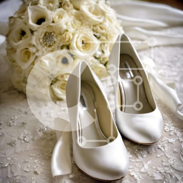 Intra Συλλεκτικό Ξύλινο Παζλ Plywood 4mm – Μπουκέτο με λευκά νυφικά παπούτσια και τριαντάφυλλα στο δαντελένιο τραπέζι Σε Ξύλινο Κουτί – Διαστάσεις: 10×10 cm – 25 κομμάτια