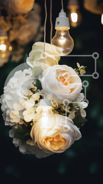 Intra Συλλεκτικό Ξύλινο Παζλ Plywood 4mm – Μπουκέτο με λευκά λουλούδια που κρέμονται από λαμπτήρες Σε Ξύλινο Κουτί – Διαστάσεις Puzzle: 10×10 cm – 25 κομμάτια