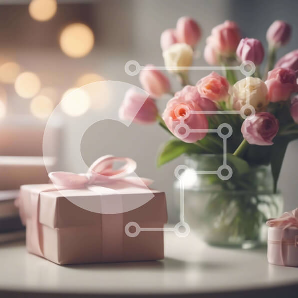 Intra Συλλεκτικό Ξύλινο Παζλ Plywood 4mm – Μπουκέτο με ροζ τουλίπες και κουτιά δώρων σε χώρο μελέτης Σε Ξύλινο Κουτί – Διαστάσεις Puzzle: 10×10 cm – 25 κομμάτια