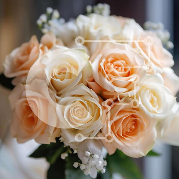 Intra Συλλεκτικό Ξύλινο Παζλ Plywood 4mm – Μπουκέτο με λευκά και ροδακινί τριαντάφυλλα μπροστά από ένα ανοιχτό παράθυρο Σε Ξύλινο Κουτί – Διαστάσεις: 10×10 cm – 25 κομμάτια