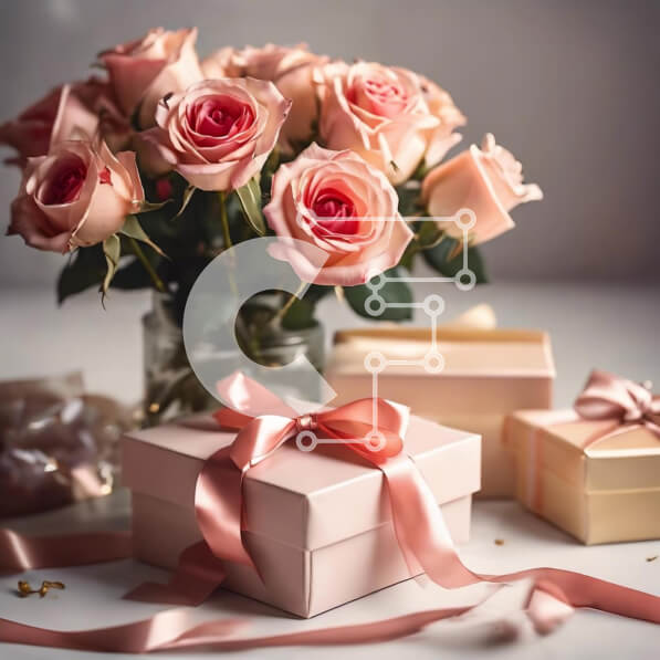 Intra Συλλεκτικό Ξύλινο Παζλ Plywood 4mm – Μπουκέτο με ροζ τριαντάφυλλα και κουτιά δώρων Σε Ξύλινο Κουτί – Διαστάσεις: 10×10 cm – 25 κομμάτια