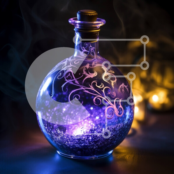 Intra Συλλεκτικό Ξύλινο Παζλ Plywood 4mm – Μυστηριώδες και μαγευτικό μοβ υγρό σε γυάλινο μπουκάλι με φελλό και φως κεριών Σε Ξύλινο Κουτί – Διαστάσεις: 10×10 cm – 25 κομμάτια