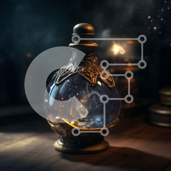 Intra Συλλεκτικό Ξύλινο Παζλ Plywood 4mm – Μυστική και μαγευτική εικόνα ενός χρυσού μπουκαλιού με στροβιλιζόμενο μπλε υγρό Σε Ξύλινο Κουτί – Διαστάσεις Puzzle: 10×10 cm – 25 κομμάτια