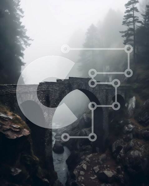 Intra Συλλεκτικό Ξύλινο Παζλ Plywood 4mm – Μυστική πέτρινη γέφυρα που εκτείνεται σε ένα ομιχλώδες φαράγγι στα βουνά Σε Ξύλινο Κουτί – Διαστάσεις: 10×10 cm – 25 κομμάτια